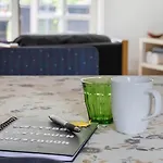 0130-Romo-Ejnar-Mikkelsensvej-22 Villa has a mini-kitchen provided with amenities, such as an electric kettle, a refrigerator, and an oven for self-catering.